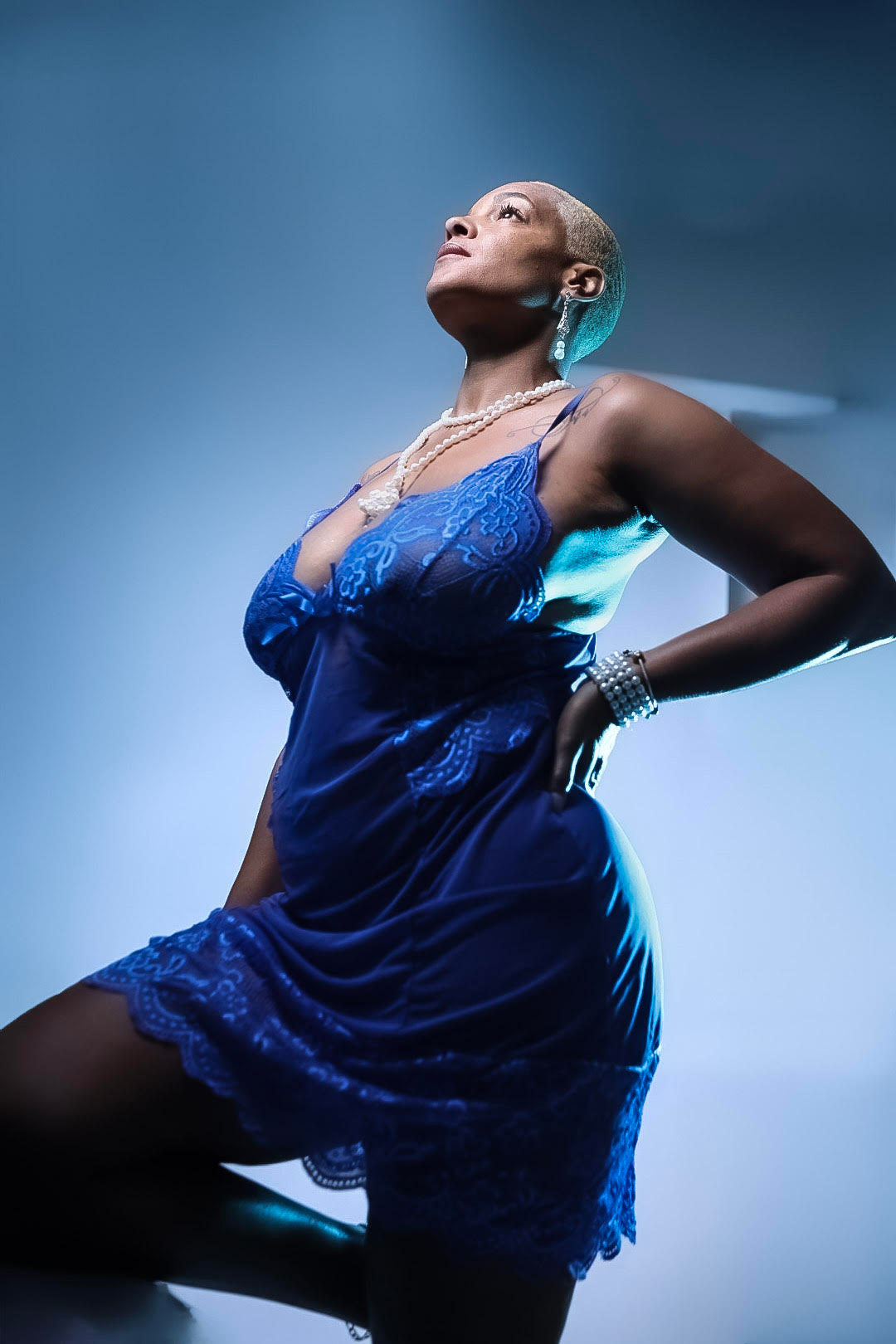 Daring yet elegant, this sapphire slip dress mesmerizes with lace details at the neckline and hem. The satin-soft body glides smoothly, turning allure into a midnight spell.